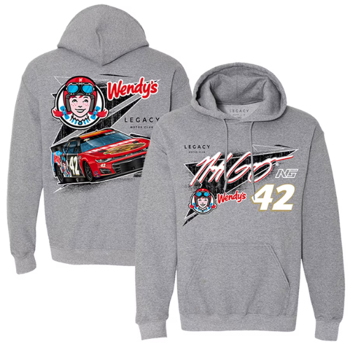 Hurry Up Clearance Sale is Live Now Mens Noah Gragson LEGACY Motor Club Team Collection Heather Gray Wendy's Car Pullover Hoodie