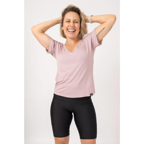 Hurry up Clearance Sale is Live Now Pale Mauve Slinky To Touch - V Neck Cuffed Sleeve Tee