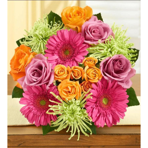 • Roses, spray roses, Gerbera daisies and Fuji mums (Colors May Vary)
