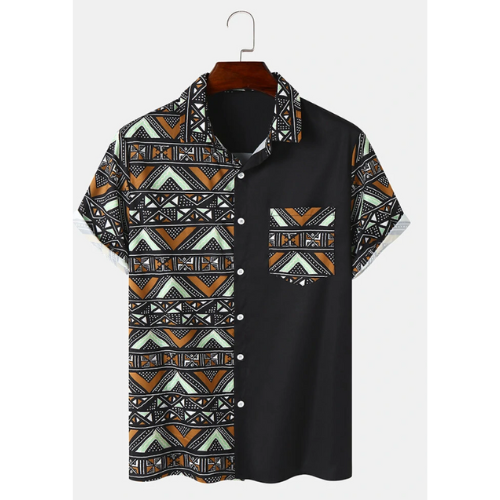Hurry up Flash Sale is live Mens Ethnic Block Print Pocket Buttons Short Sleeve Shirts