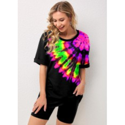 Hurry up Flash Sale is Live Now Discounts ROTITA Tie Dye Print Multi Color Short Sleeve Sweatsuit Set