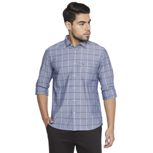 Enjoy the summer with flair with a season favourite, the Basics windowpane checks shirt for the man on the move. Made from a comfortable chambray weave, the shirt has details of a patch pocket, a classic placket and tape on the neck line. Pair this tail bottom shirt with cool denims or formal trousers.