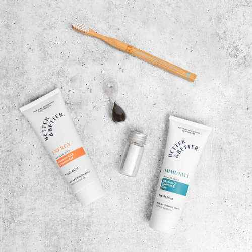 Immunity, for a daily dose of vitamins B12, D3, C, E, and zinc. And let our plastic-free natural bamboo toothbrush and natural floss reduce waste from your routine.