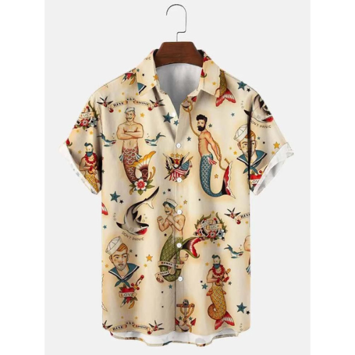 Hurry up Sale is live Discounts on Mens Vintage Mermaid Print Casual Breathable Short Sleeve Hawaiian Shirt