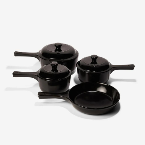 Enjoy a tasty and safe cooking experience with the Signature Series Set! This 9-piece cookware set includes a 9-inch signature skillet, three long-handled saucepans with lids, and two 100% organic cotton handle potholders. Handcrafted with non-toxic pure ceramic and free of harmful chemicals, this set contains all the tools you need to fry, sear, roast, and simmer your favorite dishes without worry. Plus, it's sustainably made—perfect for cooking up a storm with peace of mind