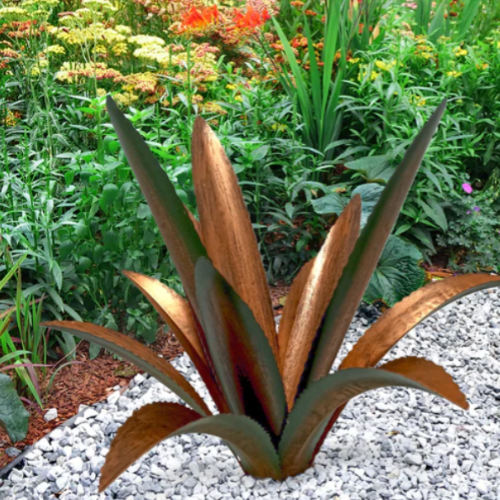 This metal agave plant is made of metal. It is coated with a high gloss finish that creates a very unique juxtaposition with the rusted steel surface. It can stand up to rain, freezing, or sunlight. Do high-strength protective security, the safety factor index is high. This agave plant is easier to care for than real plants. No need to spend time watering flowers and fertilizing, no need to worry about dying.