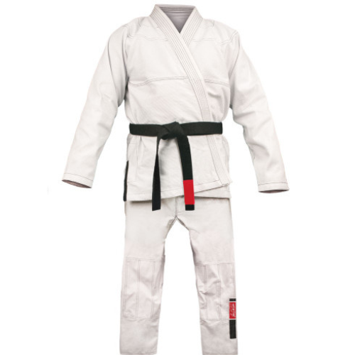 (belt not included), light in design but durable in quality. Made with 450-GSM pre-shrunk fabric; the jacket is designed with a one-piece pattern offering a seamless back. A thick lapel lined with EVA Foam. Reinforced 2/3 rows of stitching on cuffs and bottom with contrast color stitching. The quality materials continue down to the drawstring-waist pants; constructed from 9oz. RIP STOP Fabric, reinforced knee lining and Pearl Gusseted crotch offering you durability and comfort on the mat while training or at your next competition.
