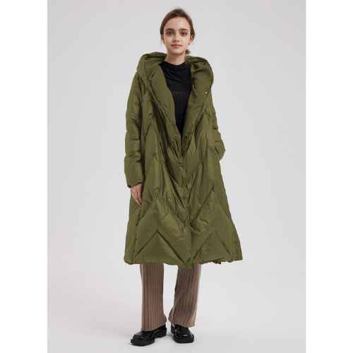 This long sleeve down-filled quilted waterproof nylon coat is all about performance. Wrap construction allows you to layer anything inside while the hood and stand collar guarantee to knee you warm. Filled with 90% eiderdown, this jacket is guaranteed to be one of your winter wardrobe-essentials.