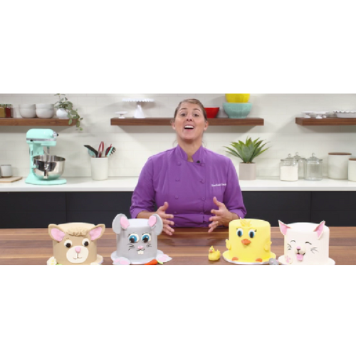 Whether you are looking for an adorable cake for your next party or trying to find a way to make quick and profitable cakes for your business, this class is will not only give you the skills you need to make four fabulous character cakes, but you’ll learn how to create any character with ease. Character cake designs are a fun and easy way to add depth to a standard round cake without all the time and skills needed to sculpt a three-dimensional cake. Join award winning cake designer Rachael Teufel in this class to learn how to create four spring themed character cakes along with coordinating accessories. By adding three-dimensional decor items to a traditional round layered cake, you will be able to create depth without the need to sculpt cake. Rachael will take you step by step through creating a little lamb, an adorable bunny, a fluffy chicken, and a sweet kitty
