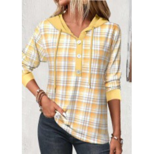 Hurry Up Sale is Live Now ROTITA Patchwork Plaid Yellow Long Sleeve Hoodie
