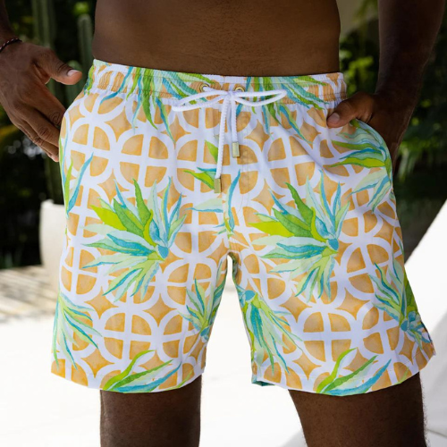 It goes down in the desert. Be ready for poolside rounds, festival days and whatever else might be out there in your falldesert mirage when you rock these sharp agave print swim trunks.