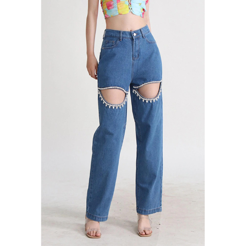 HURRY UP summer Sale is Live Buy 2 and get Discounts Offers High Rise Beading Cutout Straight Denim Jeans