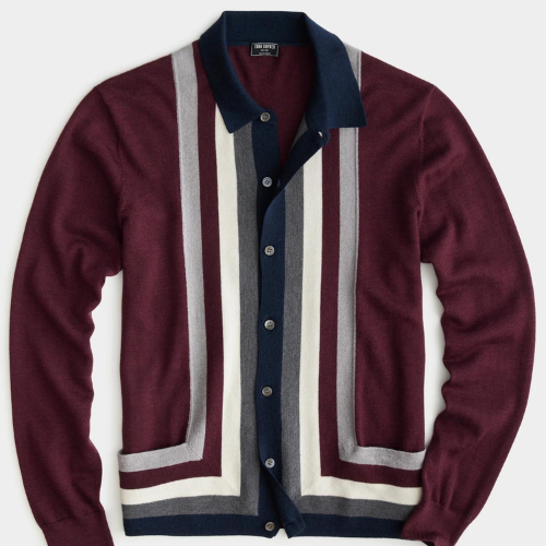 Hurry Up Winter Sale is Live Now LONG SLEEVE FULL PLACKET STRIPE SWEATER POLO IN MAROON