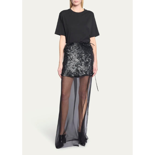 • Dries Van Noten sequined skirt features a sheer mesh overlay