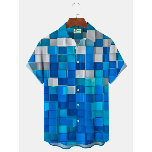 Save More Clearance Sale is Live Now Royaura Hawaiian Geometric Block Mens Button Down Pocket Shirt