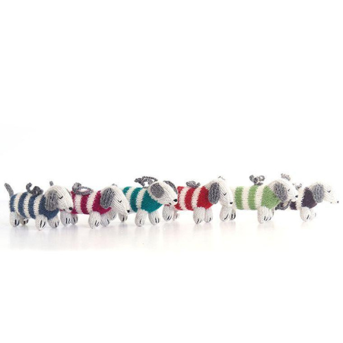 Due to the handmade nature of the doxies, each has their own personality. Build your wiener dog army from 6 colors: red, green, blue, teal, purple, magenta.