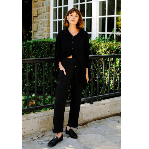 THE GAUZE RAMI PANT FEATURES A HIGH ELASTIC WAIST, DEEP EXTERNAL SIDE POCKETS, AND A SLIGHTLY CROPPED ANKLE LENGTH. WEAR THESE PANTS WITH THE MATCHING YARA TOP OR WITH ANY T-SHIRT. COMFORTABLE AND EASY, THESE PANTS ARE A WARDROBE STAPLE.