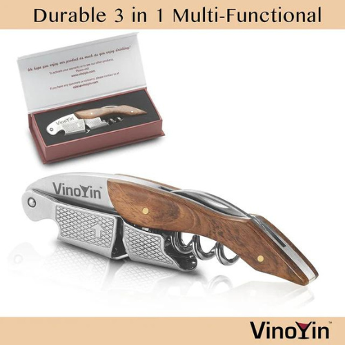 work to easily cut through foil or plastic seals and remove bottle caps and corks while keeping the latter intact. No more loose shreds of cork wood in your wine! The fulcrum, corkscrew, and knife all fold inwards when not in use to protect your hands and fingers from any sharp edges.