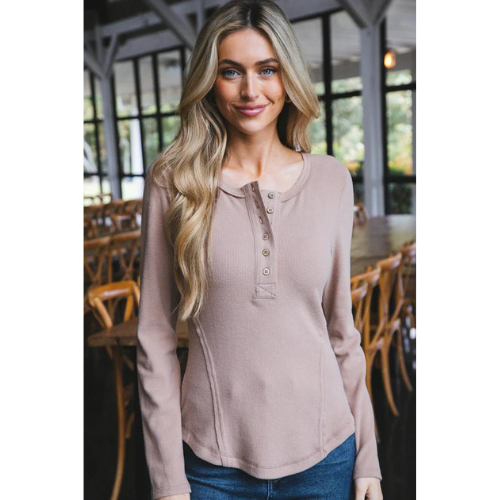 Stay cozy and stylish in the Kori Long Sleeve Knit. This classic knit features long sleeves, raw seam detailing on the sides, and a stylish button neck for a timeless look. Keep warm in this stylish and comfortable piece!