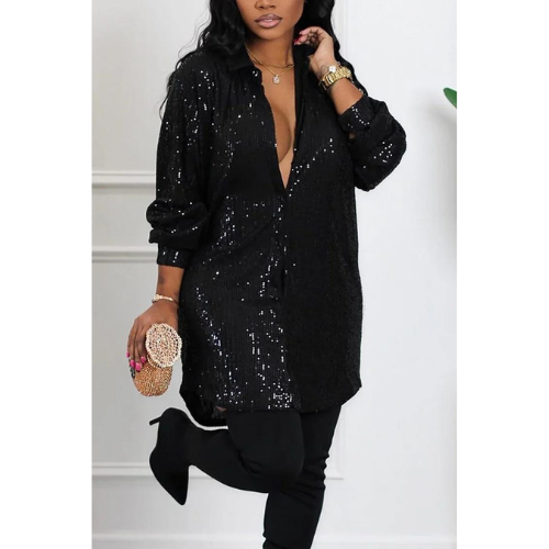 Designed with a deep v-neckline, the black dress has a flattering effect on your neck and draws attention to your cleavage. It greatly boosts your feminine charm. The eye-catching sequin design will help you make a statement. The dress is ideal for a party, vacation, club, homecoming, dating, night out, prom, and daily life. With this dress, you will look fabulous and wow everyone.