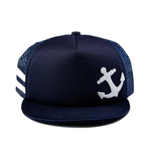 The Blue Navy Anchor Trucker Hat is the perfect accessory for outdoor fun. Featuring a breathable navy mesh back, flat brim, and Anchor patch, the hat provides excellent sun protection, while durable, high-quality materials and construction make it an ideal choice for an active lifestyle. Ideal for all weather conditions!