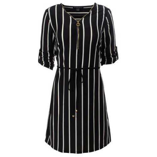 Save More on Summer Sale Is Live Now Striped Front Zip Roll Up Sleeve Day Dress - Black