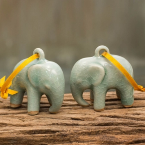 Shop Noe Sale is Live Now Discounts on Crackled Green Celadon Ceramic Ornaments (Pair), Light Blue Elephant
