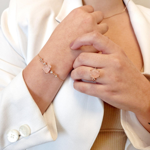 Complete your outfit with this real raw Morganite stone statement ring and chain bracelet jewelry set. A high-quality present for any occasion, including Birthdays, Anniversaries, Valentines, Christmas, and other special days.