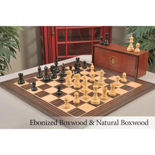 Another set new to our collection of wood chess pieces is the American Staunton wood chess set. It is not only a striking set, but is a bargain for the price. The king stands 3 3/4 inches tall with a 1 5/8 inch base. The knight has the traditional raised head with his ears laid back, teeth bared and nostrils flared so that he's ready to do battle!