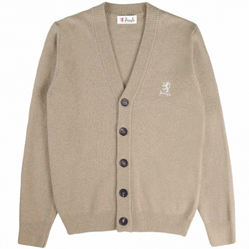 Made in Portugal, this simple V-neck cardigan is crafted from a breathable Italian lambswool blend - making it ideal for all year round. Features a button closure, signature embroidered lion on the chest & finished with ribbed trims to the neck, cuffs and hem.