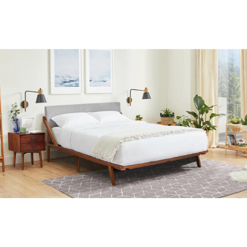 Complete with a deep walnut finish, the mid-century modern-inspired design makes this low-profile bed a dreamy addition to any space. Crafted with kiln-dried wood to prevent warping, splitting, and cracks over time. Sleep easy knowing the 100% rubberwood frame is sustainably sourced!