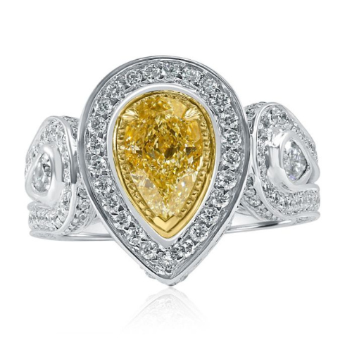 Shop Now Sale is Live GIA 3.52 Ct Pear Yellow Diamond Engagement Ring 18k White Gold