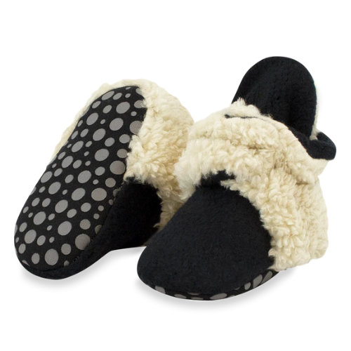 Our cozie furry booties feature our signature cozie fleece exterior with comfy furry fabric detailing on the heel and strap for added warmth and style. A cozie fleece liner adds even more warmth for those colder months. Featured here in black, they are great for easy mixing and matching to complete any cold weather outfit.