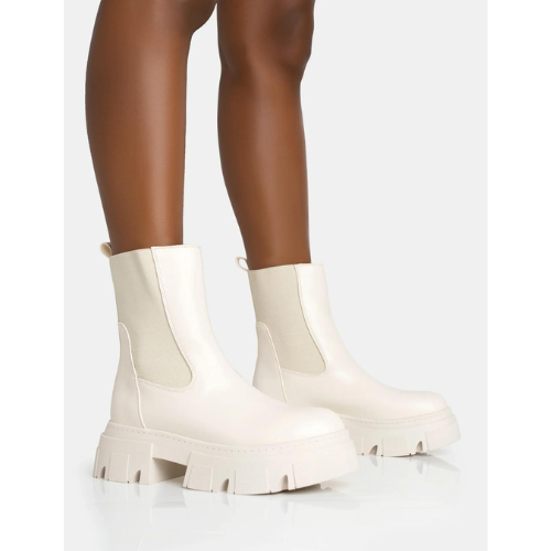 Shop Now Sale is Live Now Discounts on EDGY CREAM PU ELASTICATED ANKLE ROUNDED CHUNKY SOLE ANKLE BOOTS