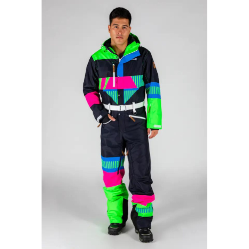 Skiing is the easy part, you know how to do that. The difficult thing is how to make yourself known in a sea of black North Face jackets and pea-brains who don't wear helmets. It's obvious that the style of this vintage one piece ski suit is out of this world, but you'll be pleasantly surprised to learn that the features are just as impressive