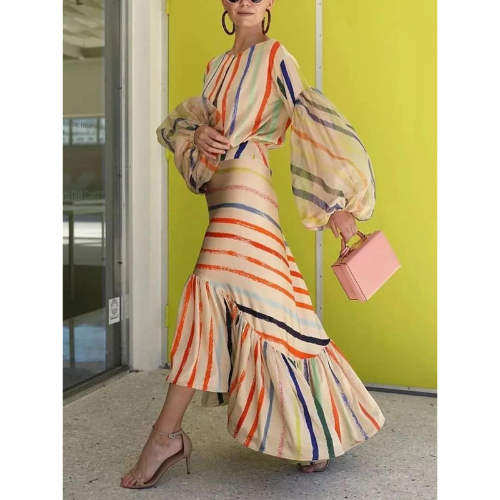 Shop Now Sale is Live on Elegant Regular Fit Striped Crew Neck Maxi Dress