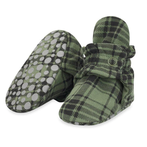 Shop Now Sale is live on PLAID ORGANIC COTTON GRIPPER BABY BOOTIE - OLIVE