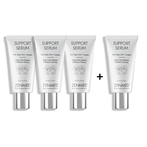 Stock up and save BIG! NEW PACKAGING DESIGN, now in a convenient, luxe tube. The ZENMED Support Serum is a soothing creme-serum designed for sensitive, reactive, redness prone, and Rosacea skin types