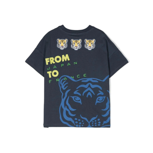 Journey-print short-sleeve T-shirt from KENZO KIDS featuring multicolour, dark blue, stretch-cotton, logo print to the front, round neck, short sleeves and straight hem.