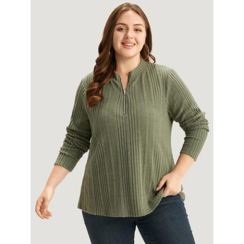 SIGN UP And Get Discounts on First Order Plain Rib Knit Half Zip T-Shirt