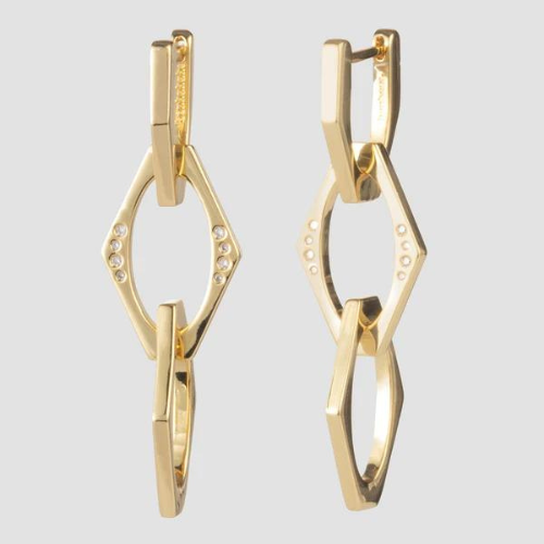 The Billie Link Chain Earrings are crafted from 100% sustainable brass, dipped in your choice of Rhodium, 18k Yellow or Rose Gold and adorned with brilliant-cut Swarovski crystals.